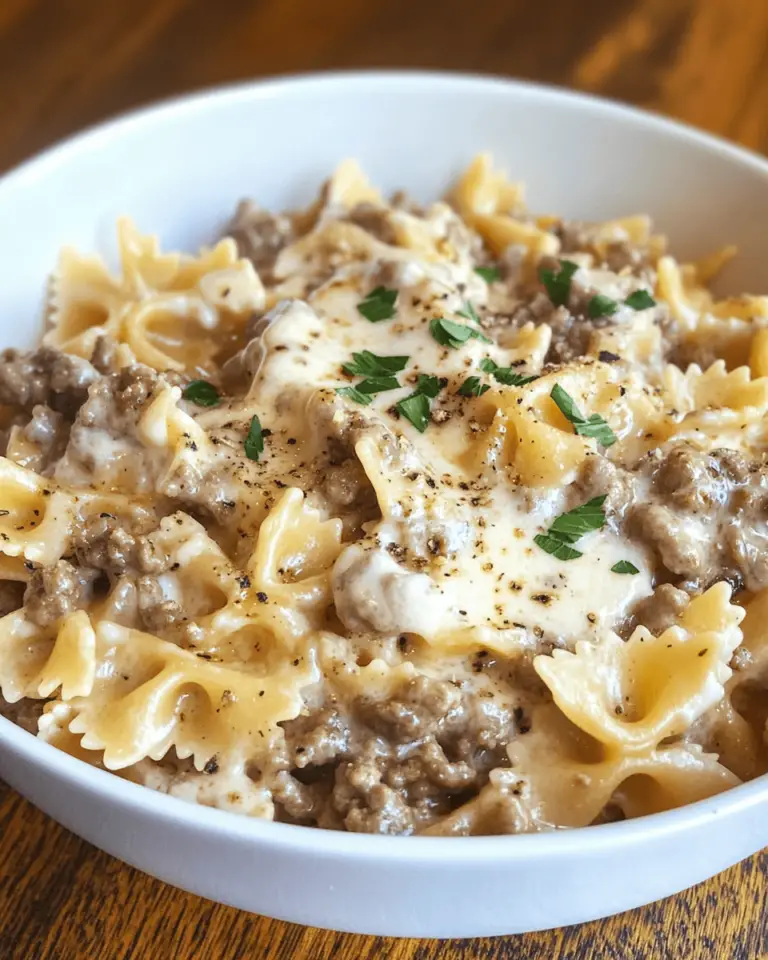 Why You’ll Love This Beef and Bowtie Pasta with Alfredo Sauce Beef and Bowtie Pasta with Alfredo Sauce is the epitome of comfort food. Rich, creamy, and packed with savory
