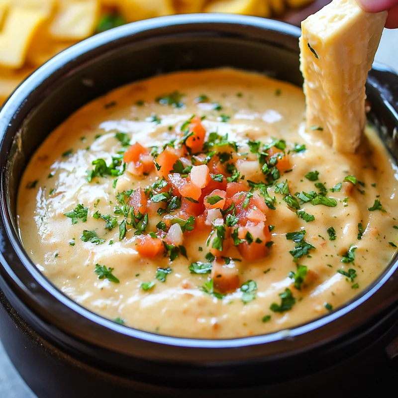 - Once it’s all melted, smooth, and perfectly warm, it’s ready! Give it one final stir and keep it on the “Warm” setting in your slow cooker for serving. Grab your chips (or whatever dippers you love) and dig in!