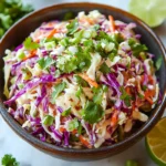 A bright, fresh, and slightly creamy slaw that takes tacos from good to ‘OH MY GOODNESS’. Ridiculously easy and ready in 5 minutes, perfect for busy nights, potlucks, or any taco occasion.