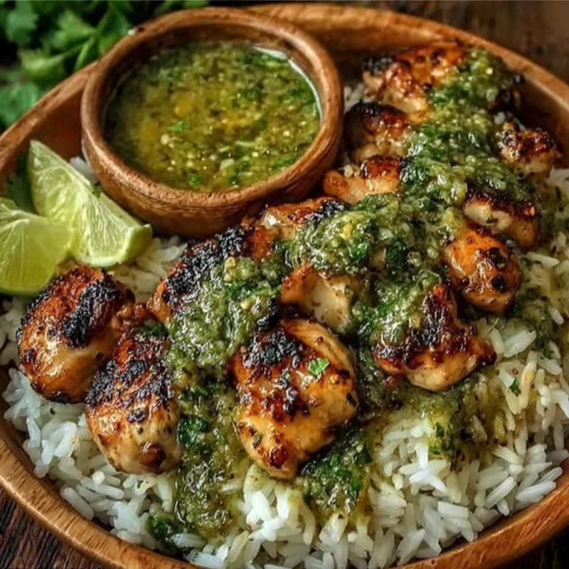 - Serve: Spoon rice and chicken onto plates. Drizzle generously with the green sauce.
