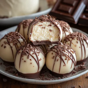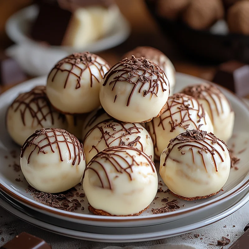 - Dip and Decorate: Take the chilled balls out of the freezer/fridge. Using a fork or a dipping tool, dip each ball fully into the melted white chocolate, letting any excess drip off. Place the coated ball back on the parchment-lined baking sheet. While the white chocolate is still wet, you can drizzle the melted dark chocolate over the top using a spoon or a piping bag with a very small tip. Get creative with swirls or lines!
