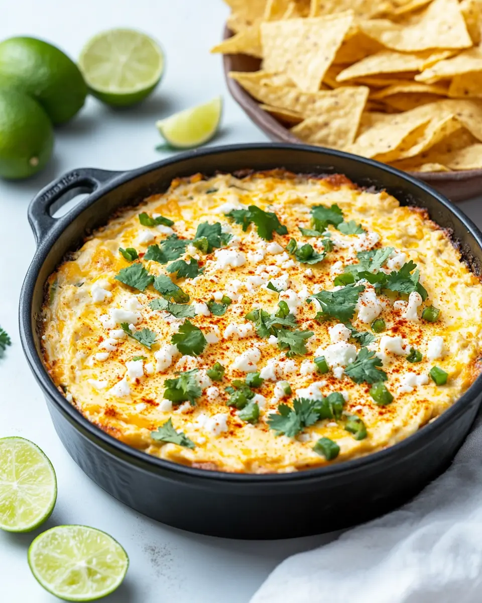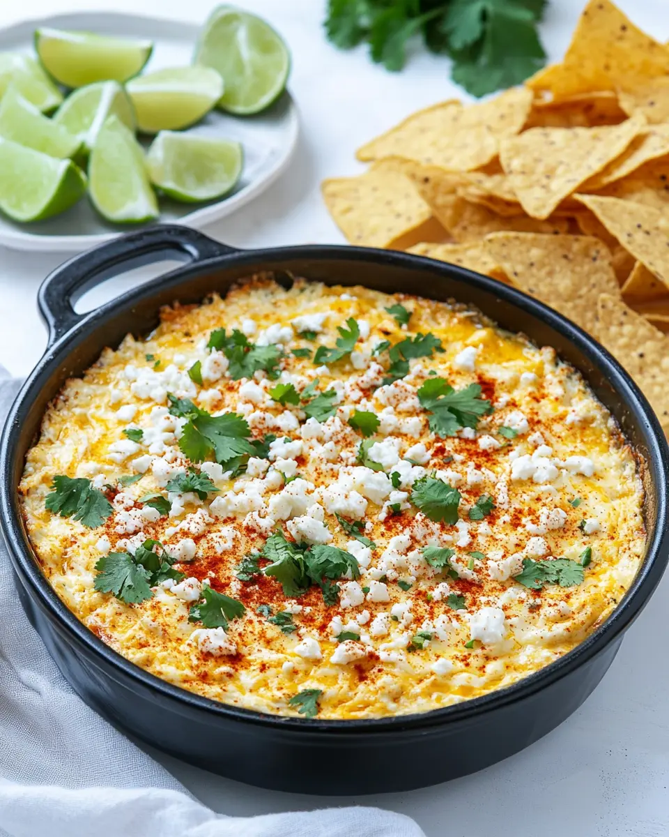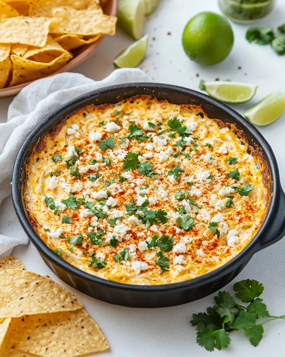 Baked Elote Dip pairs perfectly with a variety of accompaniments that enhance its creamy, cheesy goodness. Tortilla chips are a classic choice, providing the perfect crunch for dipping. For a healthier option, consider serving it with sliced veggies like bell peppers or cucumbers, which add a refreshing contrast to the rich dip. Grilled breads, such as baguette slices, can also be delightful for scooping up the dip, adding a smoky flavor.