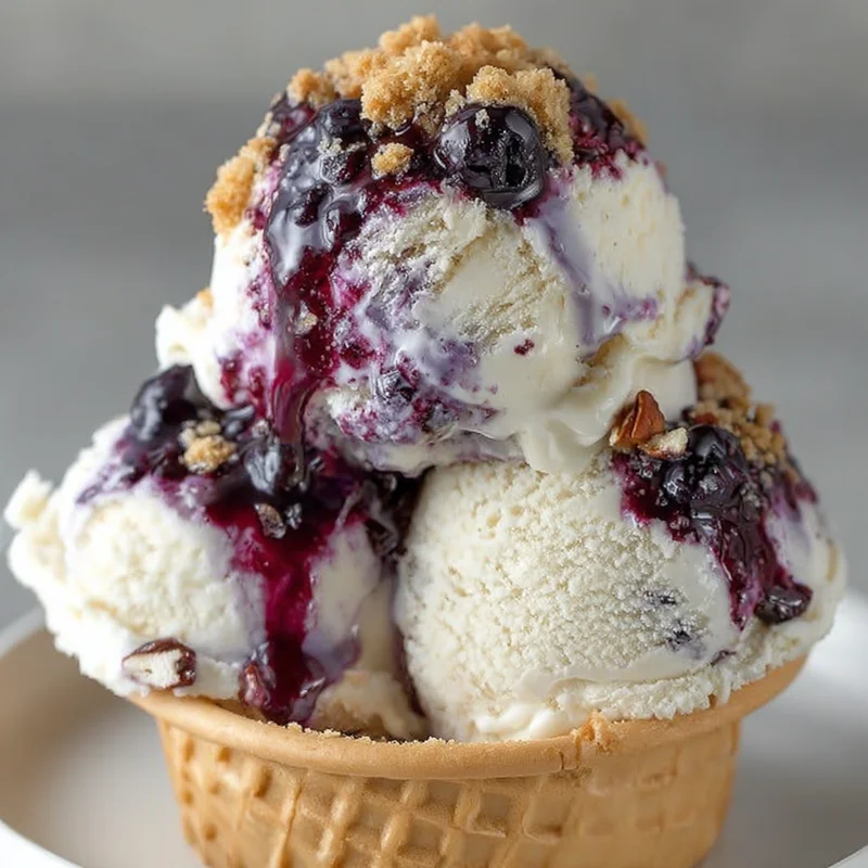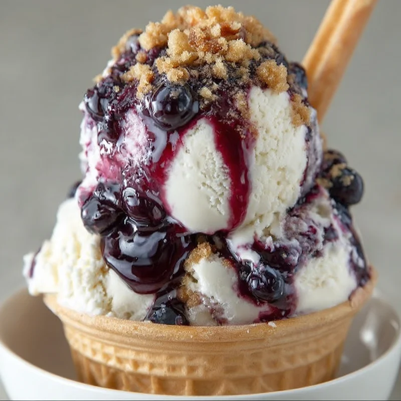 - The moment we've all been waiting for! Grab a freezer-safe container. We're going to layer this like a masterpiece. Dollop some of your freshly churned vanilla ice cream into the container. Then, spoon some of that gorgeous, cooled blueberry compote over the top. Sprinkle a generous amount of your cooled, crunchy crumble. Gently swirl it all together with a knife or a spoon – don't overmix, we want those beautiful streaks! Repeat the layering process until your container is full. Pop it into the freezer for at least 4 hours, or until it's nice and firm. And there you have it – your very own Blueberry Crumble Ice Cream!