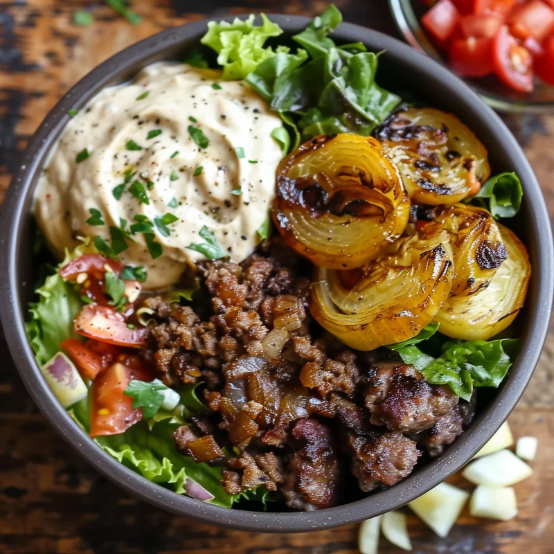Burger Bowls with Dreamy Caramelized Onion Aioli