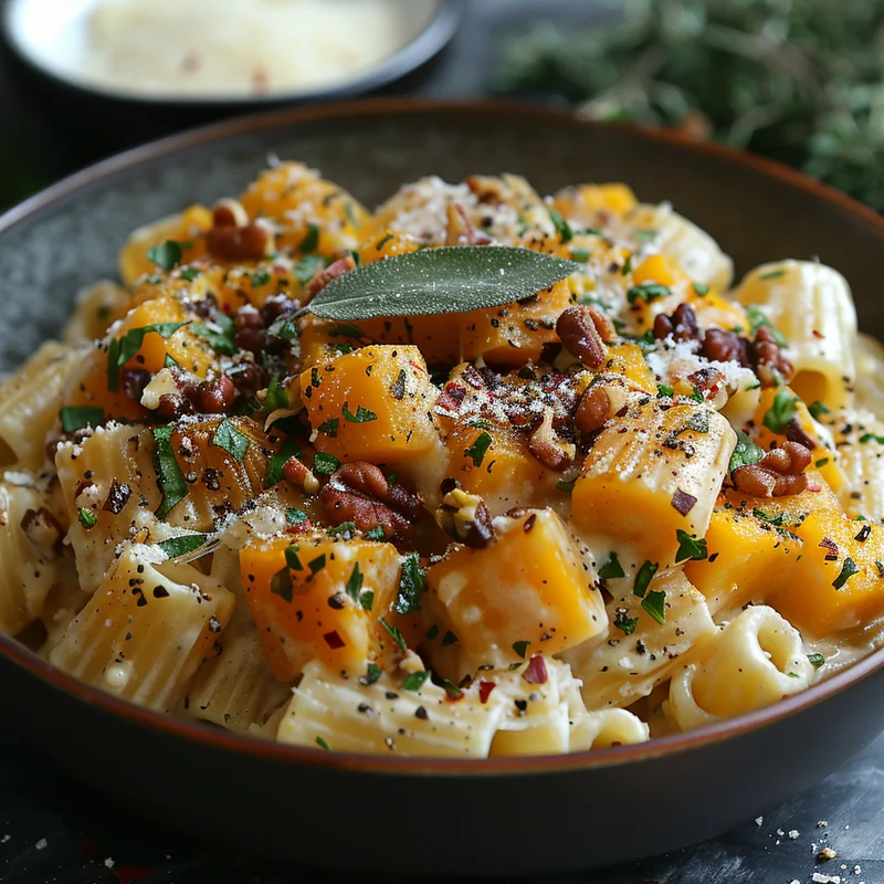 - Heat 1 tablespoon of olive oil in a large skillet over medium heat. Add diced butternut squash and cook until tender and browned, about 8-10 minutes. Remove from skillet and set aside.12 oz pasta of your choice