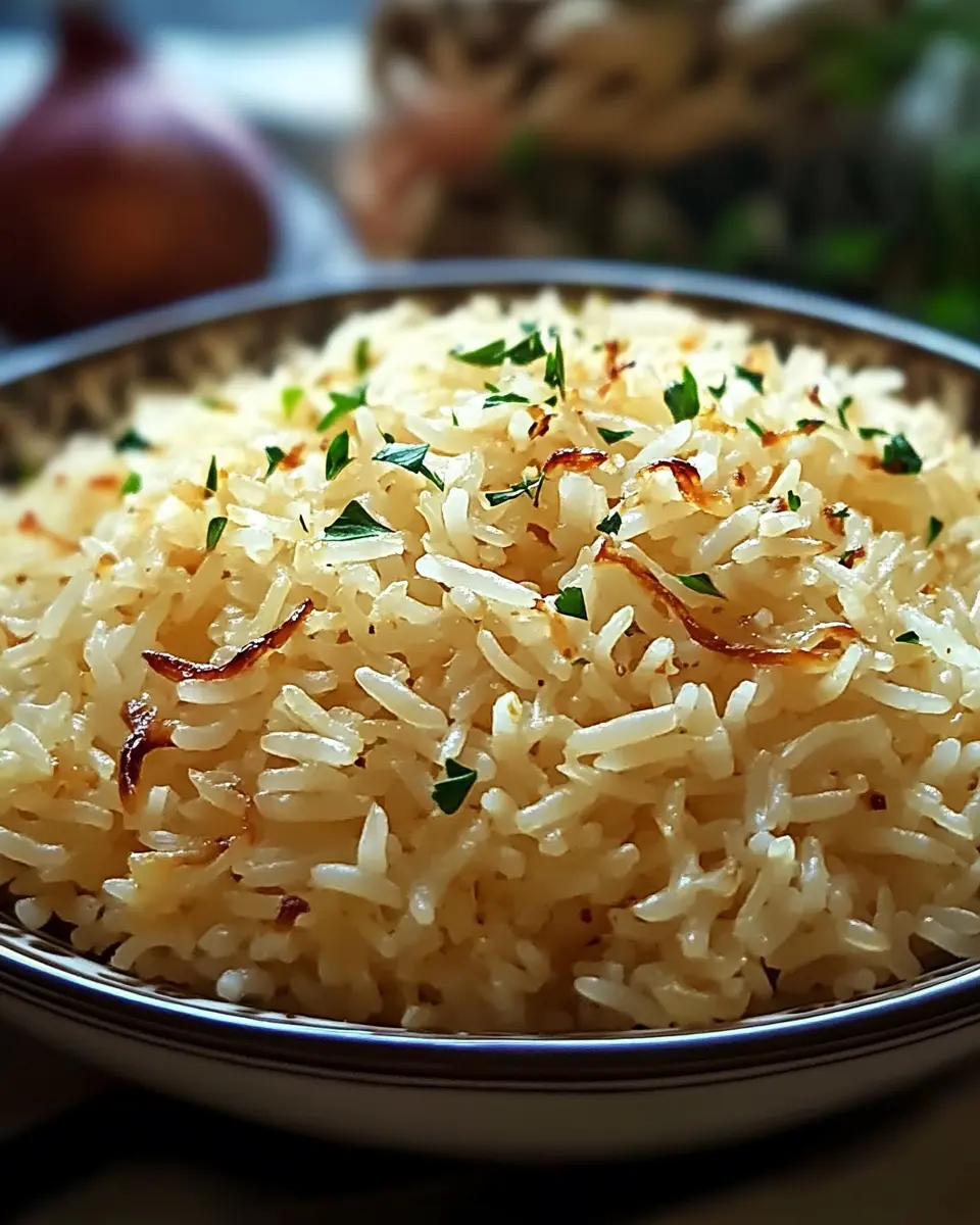 Enhance the flavor profile of your rice by adding fresh herbs such as parsley or thyme. These herbs can elevate the dish, providing freshness and a fragrant aroma that complements the buttery onion base beautifully.