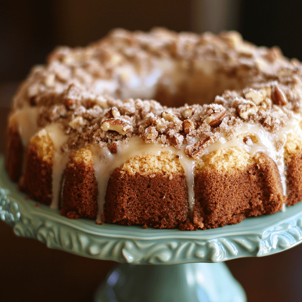 The cinnamon streusel and rich glaze give this coffee cake a decadent finish, while the cake itself stays moist and flavorful. It’s the perfect balance of sweet and spicy, and the addition of optional chopped pecans adds a delightful crunch.