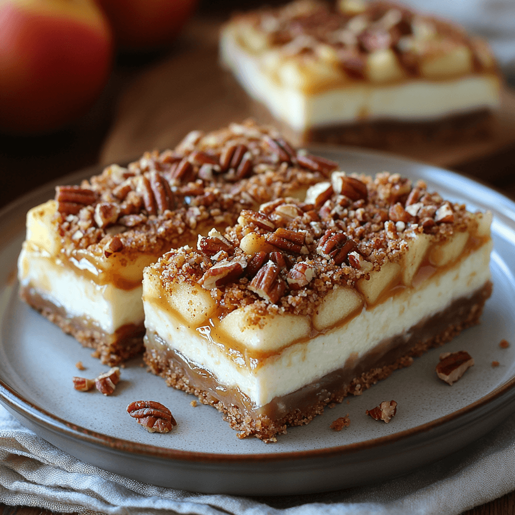 Why do these bars stand out? First, they offer a delightful twist on the classic cheesecake. While traditional cheesecakes are often a luxurious dessert, adding caramel apples and pecans provides a fun, seasonal flavor that’s perfect for autumn. The graham cracker crust gives the bars a perfect amount of crunch, while the cream cheese filling is rich and smooth. The apples add freshness and a hint of tartness, while the caramel sauce pulls everything together in the most divine way possible.