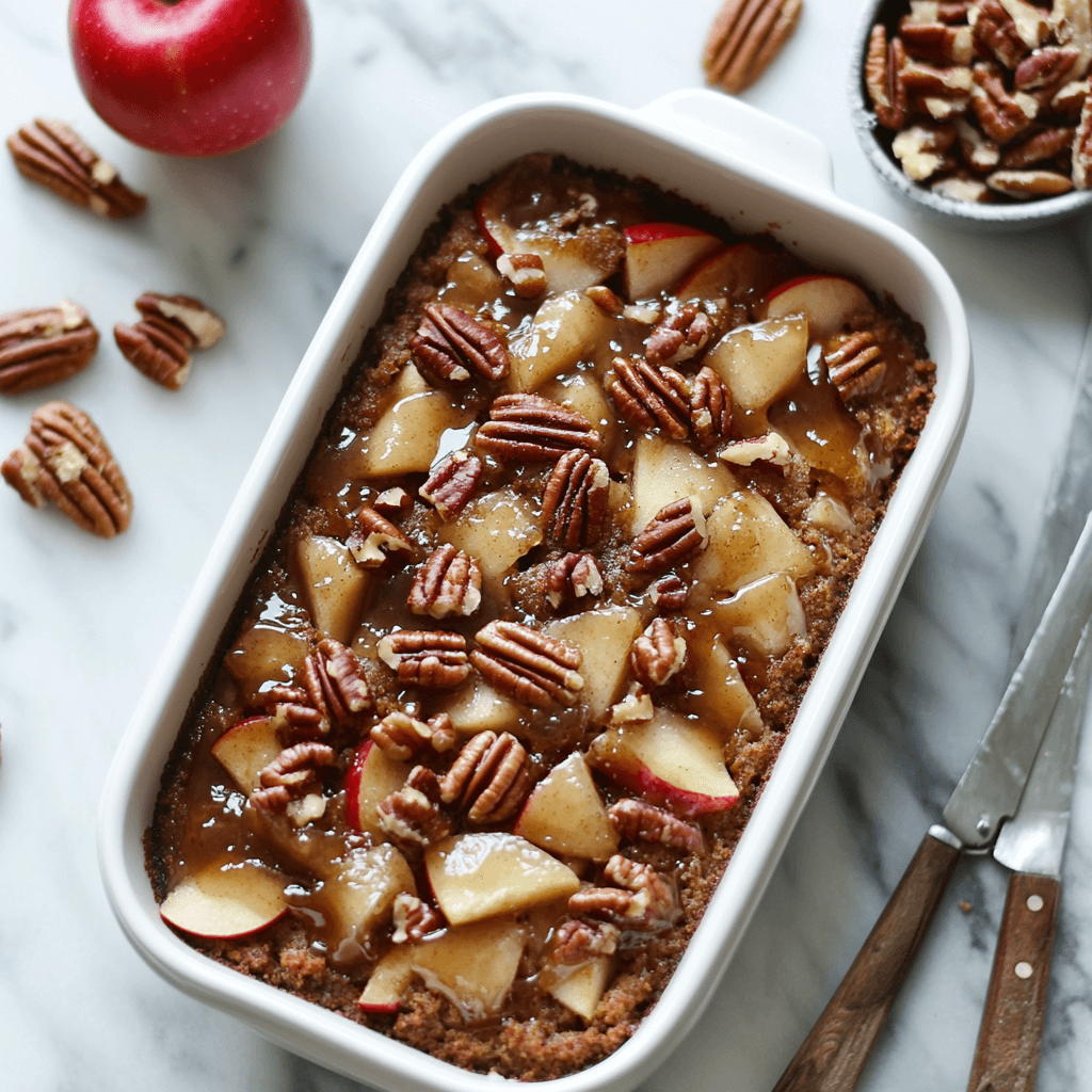 For added sweetness and texture, try adding dried cranberries, raisins, or dried cherries to the batter. The fruit will complement the caramelized apples and add an extra layer of flavor.