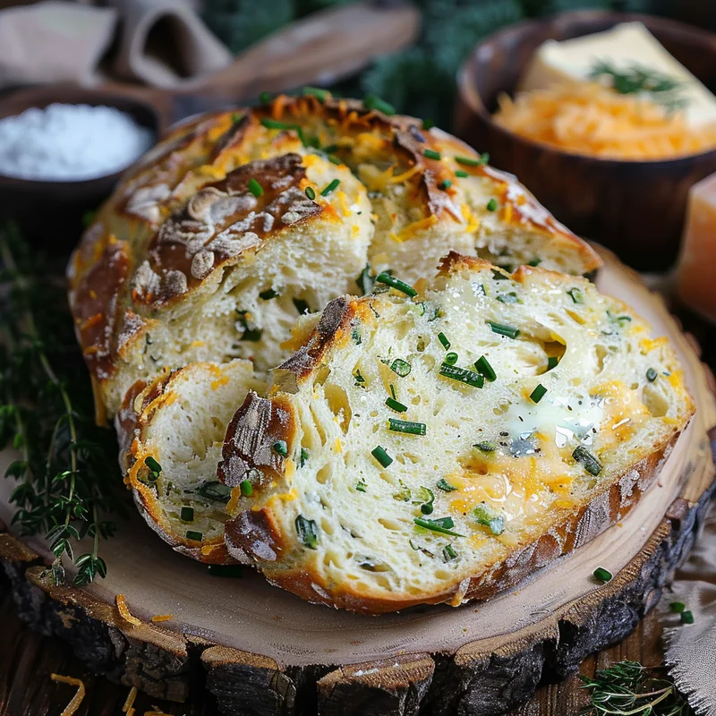 - Stir in grated cheddar cheese, chopped chives, and chopped thyme.4 cups All-purpose flour