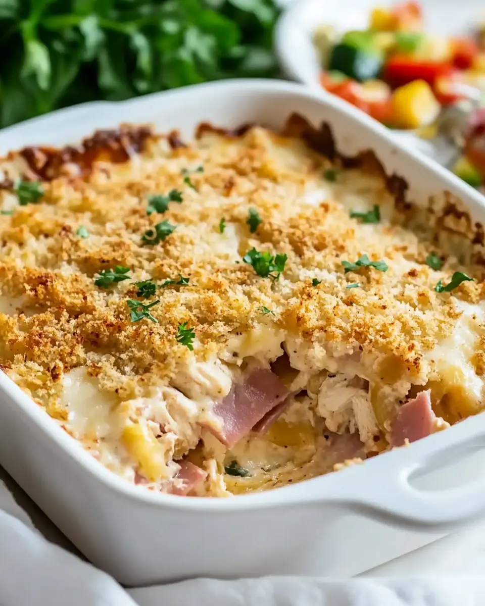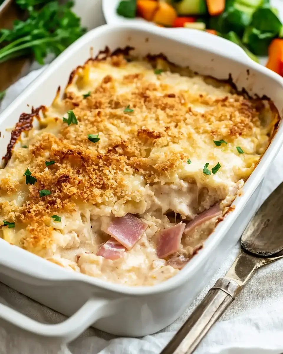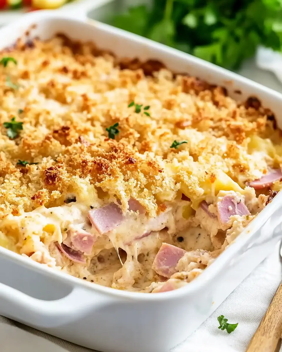 The Chicken Cordon Bleu Casserole beautifully combines the beloved flavors of classic chicken cordon bleu into a simple, satisfying dish. Its creamy texture, savory chicken, and crispy breadcrumb topping make it a favorite among families and young professionals alike, perfect for any weeknight dinner.