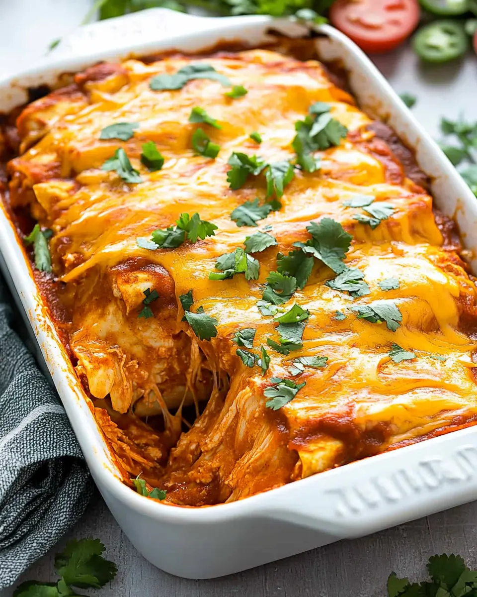 One of the standout features of this casserole is its ability to please everyone at the table. The combination of tender chicken, savory enchilada sauce, and melted cheese creates a dish that appeals to both kids and adults alike. It’s a guaranteed hit for family dinners, turning mealtime into a joyful occasion filled with laughter and satisfied smiles.