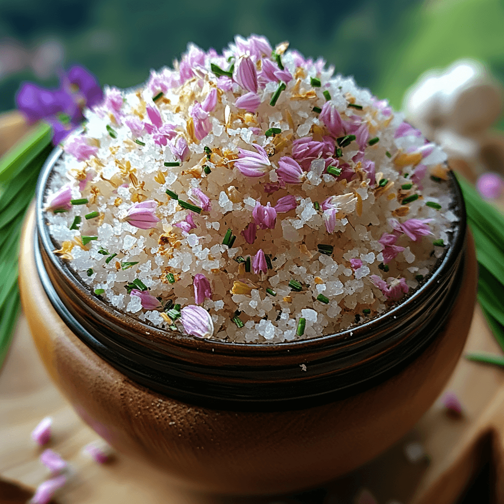 - Garlic Chive Blossom Salt: Add finely minced garlic to the mixture for a savory, pungent flavor.
