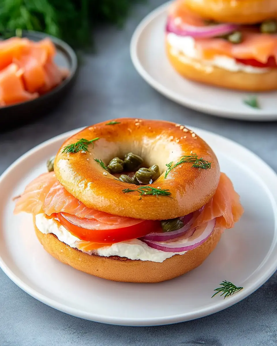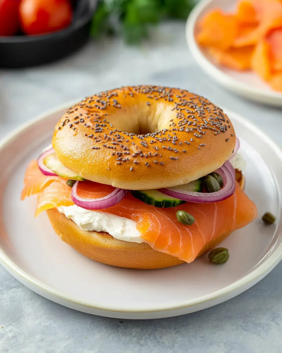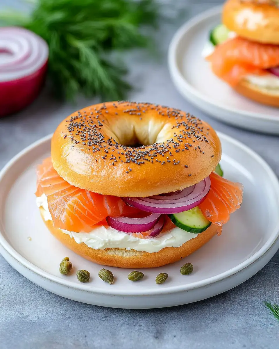 A delicious and easy-to-make bagel sandwich featuring smoked salmon, cream cheese, and capers, perfect for breakfast or brunch.