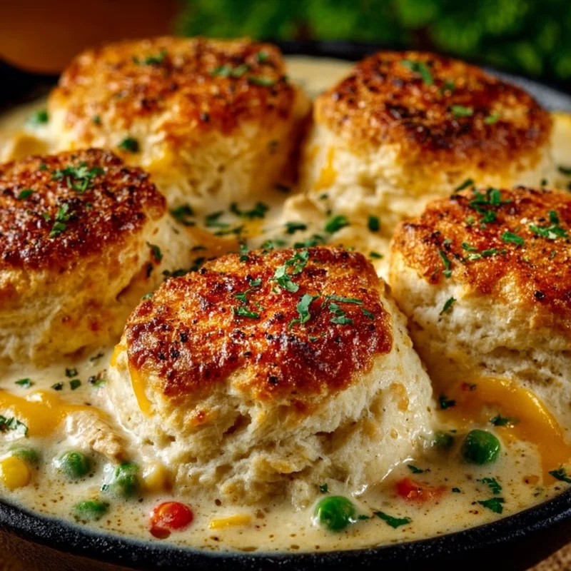 - Crowd-pleasing: Even the pickiest eaters in your house will be asking for seconds. The combination of tender chicken, veggies, creamy sauce, and those irresistible biscuits is pure magic.
