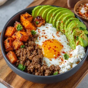 Store any leftover assembled bowls (without the fresh avocado or hot honey drizzle) in an airtight container in the refrigerator for up to 2-3 days. The sweet potatoes and ground beef will keep well. It’s best to add the fresh avocado and hot honey just before serving the leftovers to maintain their best texture and flavor.