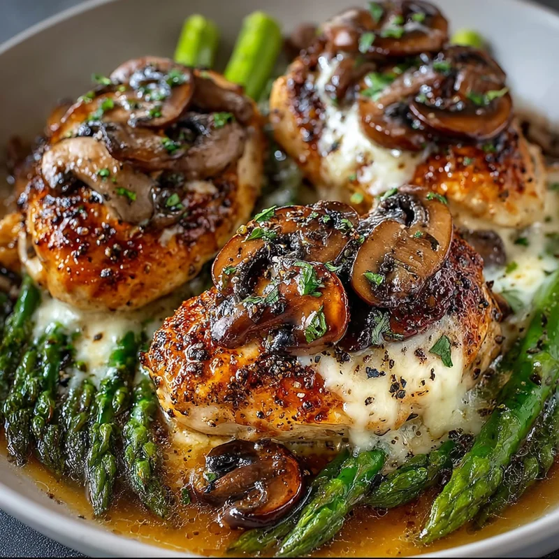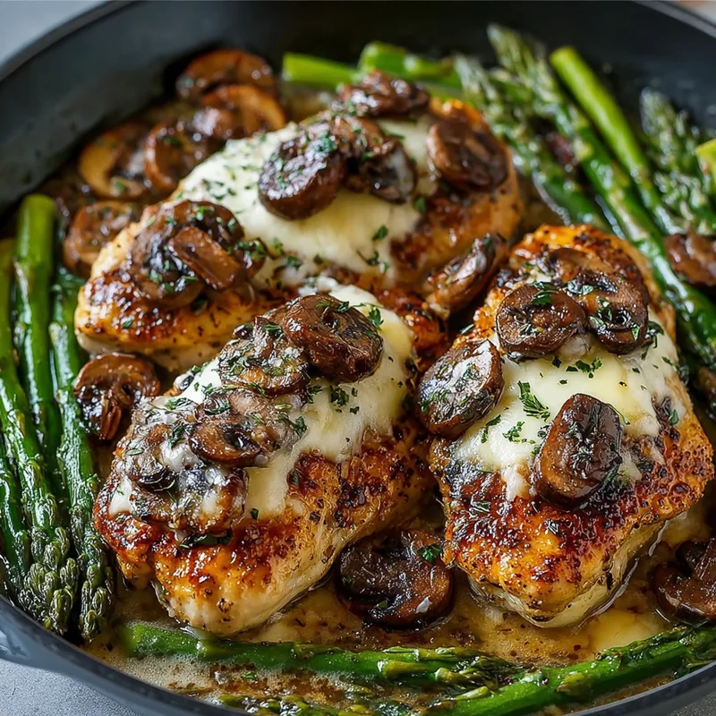 - Bring it All Together: Gently place your cooked chicken breasts back into the skillet, nestled amongst the mushrooms and asparagus. Now, sprinkle that shredded mozzarella cheese all over the chicken. Pop a lid on the skillet and let it cook for another 2-3 minutes. You’re just waiting for that cheese to melt into a glorious, bubbly blanket.