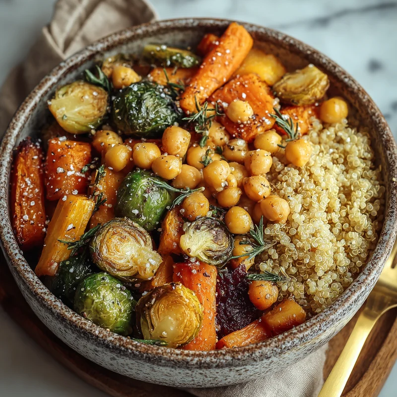 - Combine Everything: Grab a medium-sized bowl. Add your drained and rinsed chickpeas, your beautiful roasted winter vegetables, and your fluffy cooked quinoa.