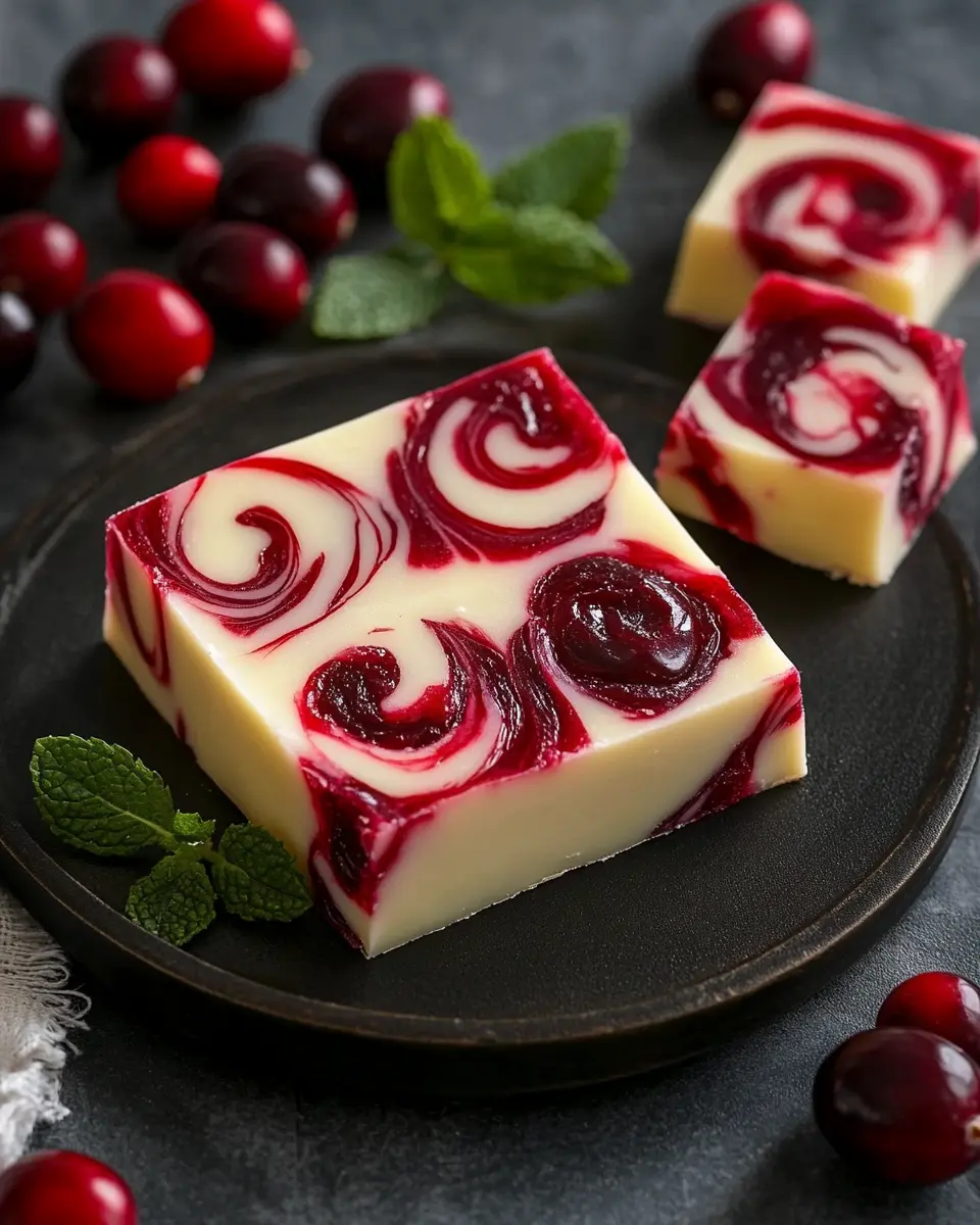 Cranberry Swirl White Chocolate Fudge is not just a treat; it’s a centerpiece for your holiday gatherings. The vibrant red of the cranberries against the creamy white fudge creates a stunning visual that’s sure to impress your guests. This fudge embodies the festive spirit, making it a delightful addition to any dessert table.