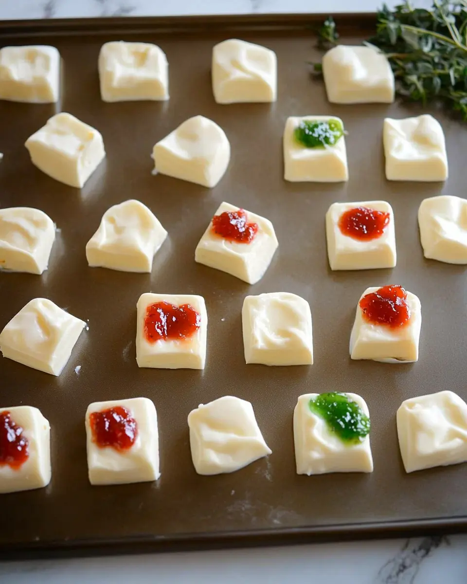 These Cream Cheese & Pepper Jelly Bites can be prepared ahead of time, making them a convenient choice for busy hosts. Simply assemble the bites as instructed, then store them in an airtight container in the refrigerator. To maintain the best texture, it’s advisable to add the pepper jelly just before serving, keeping the crackers crisp and the cheese fresh.