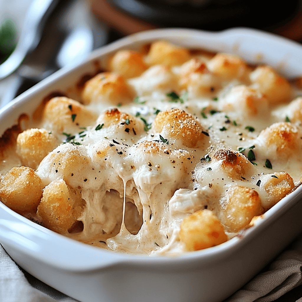 Creamy Alfredo Chicken & Tater Tot Casserole