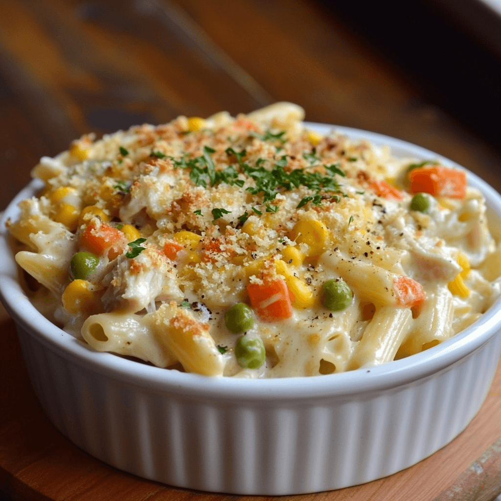 If you’re searching for a comforting, hearty, and easy-to-make dinner, Creamy Chicken Pasta Casserole is the perfect recipe for you. It’s an all-in-one dish that brings together tender pasta, succulent chicken, mixed vegetables, and a rich, creamy sauce. Topped with melted cheddar cheese and a crunchy panko breadcrumb topping, this casserole is a great way to satisfy your family’s hunger while providing them with a delicious meal that everyone will love.