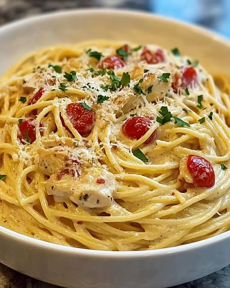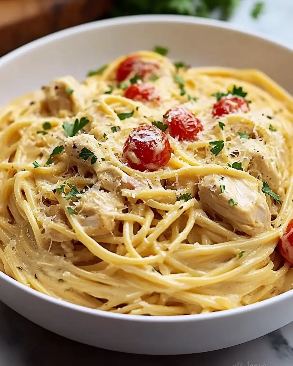 In conclusion, Creamy Crockpot Chicken Spaghetti is the perfect dish for those seeking a delicious, hassle-free meal. With its rich, creamy sauce and tender chicken, it delivers comfort food at its finest while fitting seamlessly into a busy lifestyle. This recipe is not only easy to prepare but also allows for a variety of customization options, making it versatile enough to please everyone at the table.