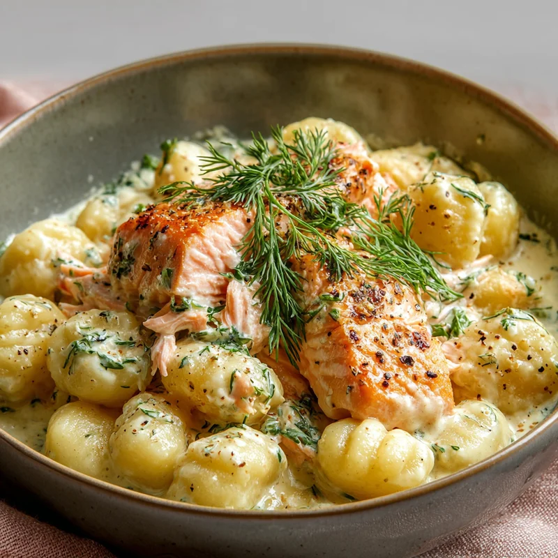 - Serve and Enjoy! Spoon your delicious Creamy Salmon Gnocchi into bowls immediately. Garnish with a generous sprinkle of fresh dill – it really makes the dish pop! Take a moment to admire your handiwork, and then dive in. You've earned it!