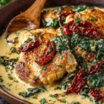 This creamy sun-dried tomato chicken is a quick and easy weeknight meal that feels fancy enough for guests, with a rich and flavorful sauce that’s sure to please everyone.