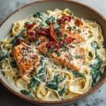 A delicious and simple creamy Tuscan salmon pasta recipe perfect for busy weeknights, featuring tender salmon, sun-dried tomatoes, and spinach in a luscious cream sauce.