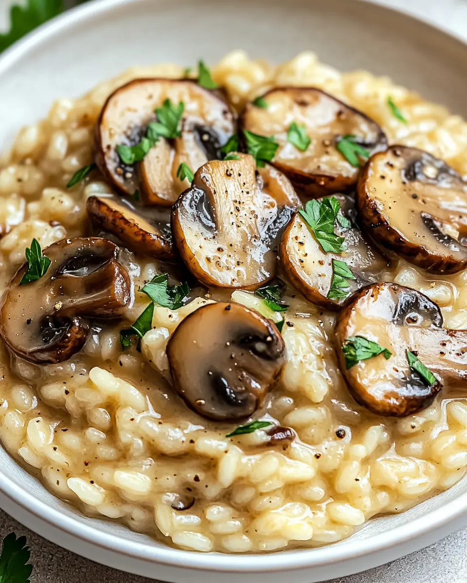 This creamy vegan mushroom risotto is rich, flavorful, and comforting.