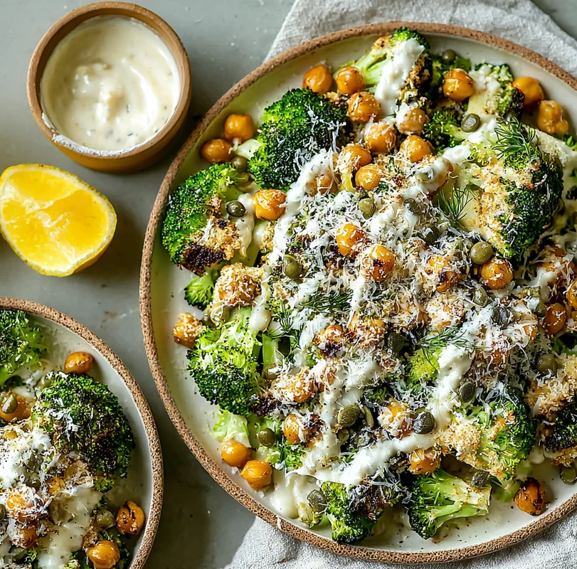 The dressing can be made ahead of time, but it’s best to roast the broccoli and chickpeas just before serving for maximum crunch. Toss everything together right before you’re ready to eat.