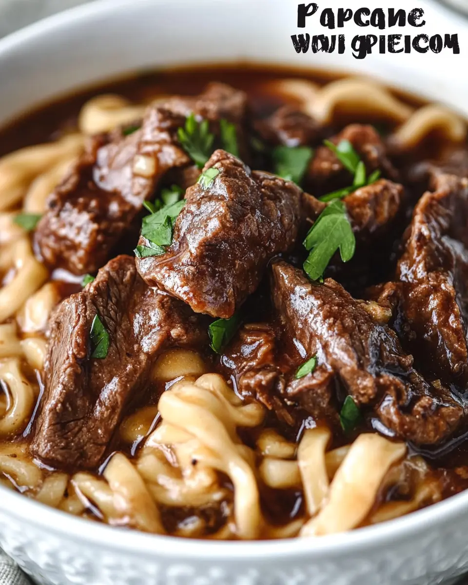 Whether you’re cooking for yourself or a group, this dish is sure to please everyone at the table. The combination of tender beef, savory noodles, and a hint of tang from the pepperoncini peppers makes it a hit with both kids and adults alike. It’s comfort food that brings families together, making mealtime a cherished experience.