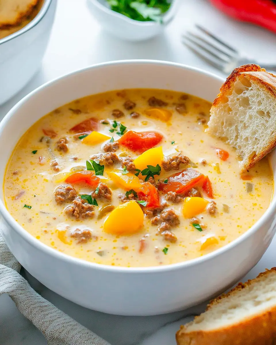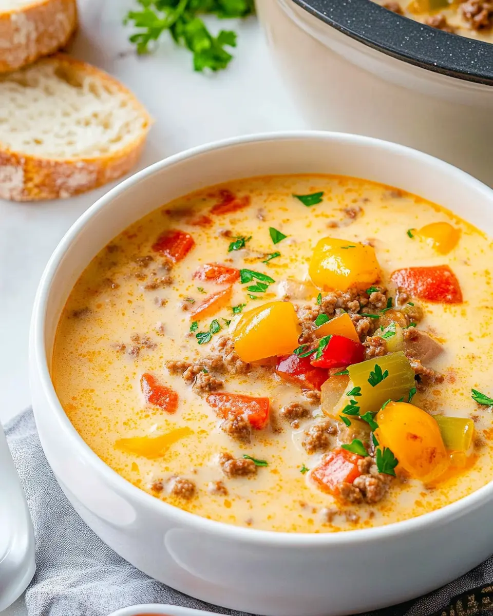 A creamy and hearty soup packed with all the flavors of a cheeseburger.
