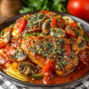 Once it’s done, give it a final stir. Ladle this glorious Chicken Cacciatore into bowls and garnish with plenty of fresh parsley and basil. It’s the perfect finishing touch!