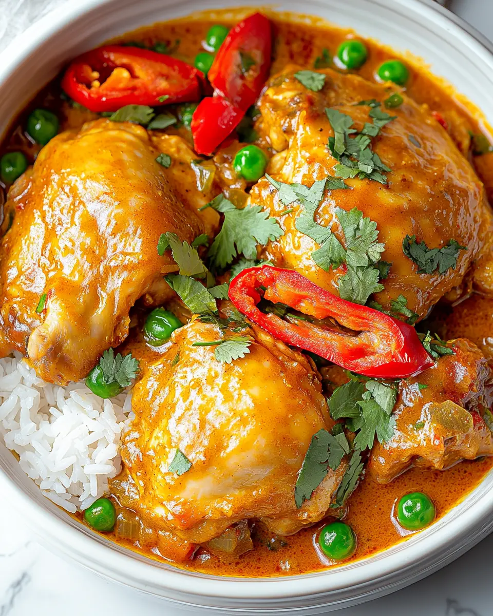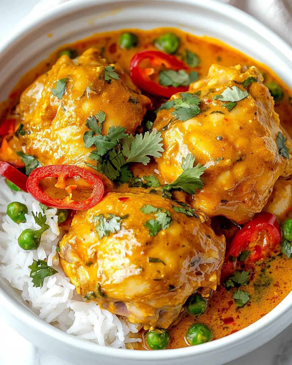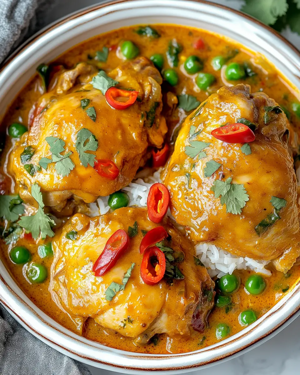A rich and flavorful slow-cooked dish featuring chicken thighs in a creamy coconut curry sauce.