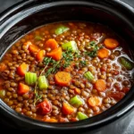 A warm and comforting crockpot lentil soup that’s easy to make and perfect for a chilly evening. Packed with plant-based protein and vegetables, this hearty soup is a weeknight superhero.