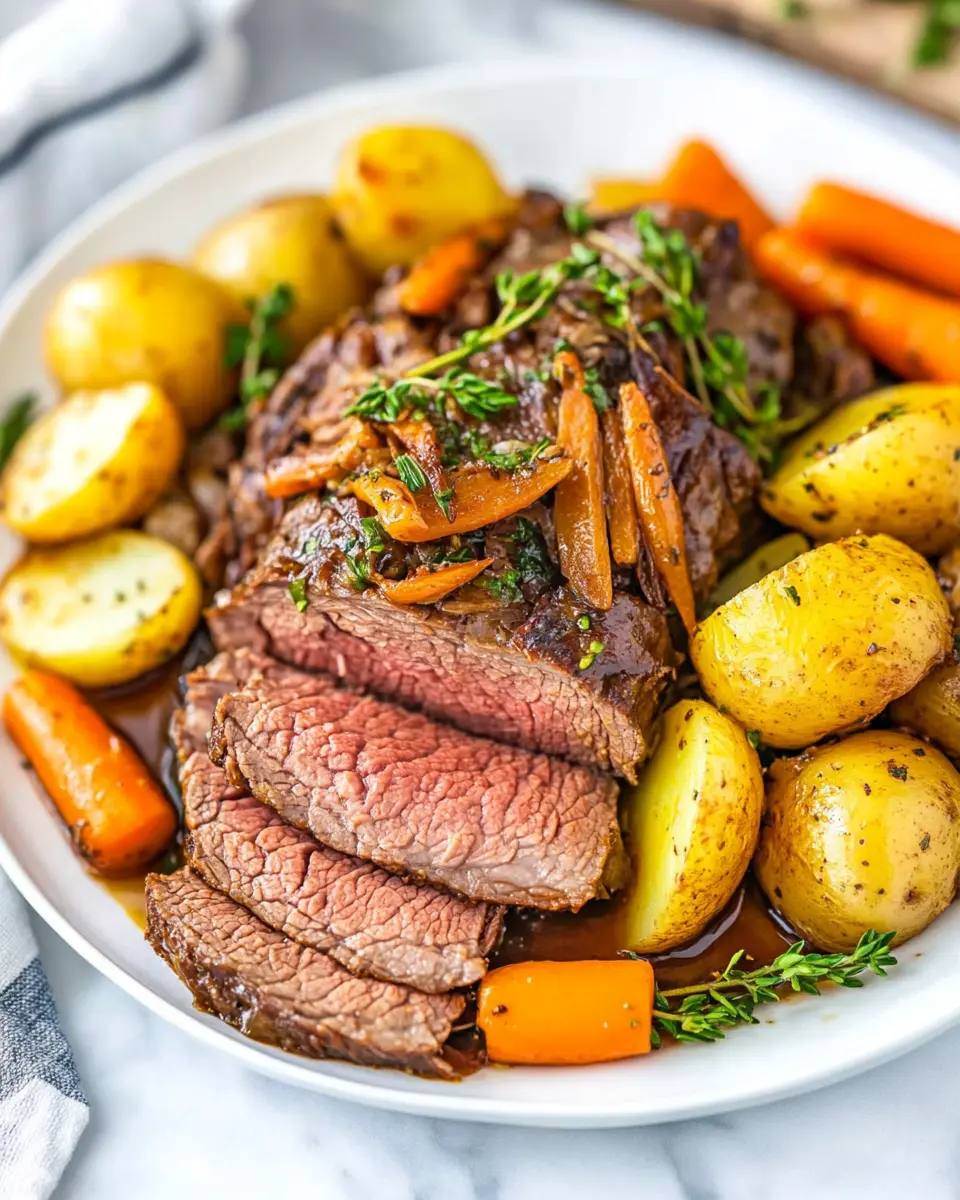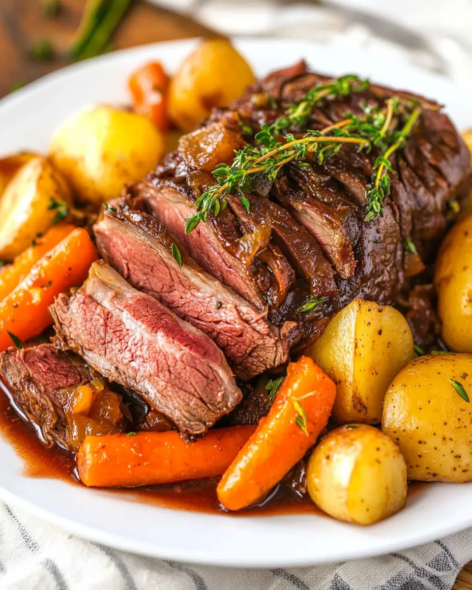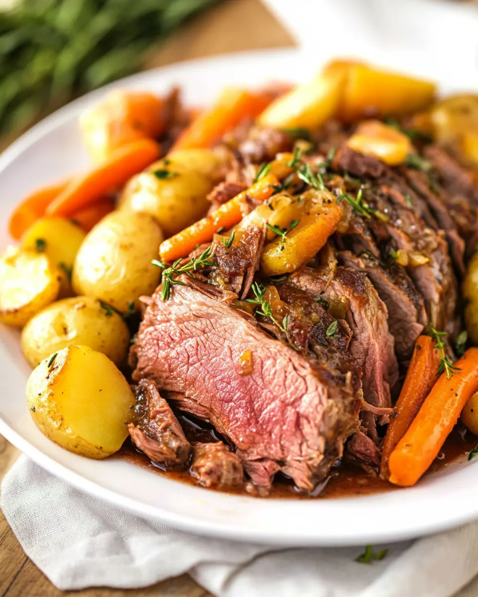 Enhancing moisture and flavor, beef broth is essential in this recipe. It helps keep the roast juicy throughout the cooking process, contributing to the final dish’s succulence.