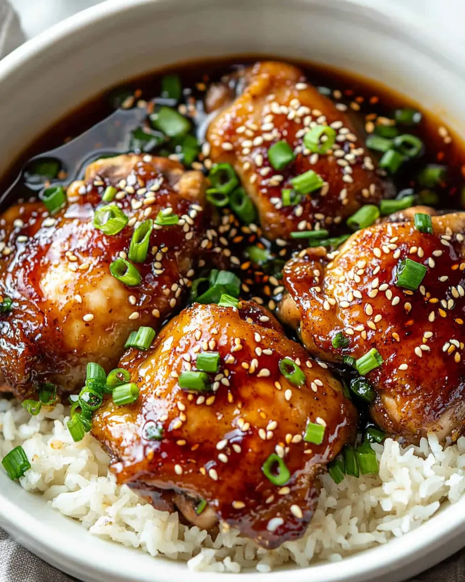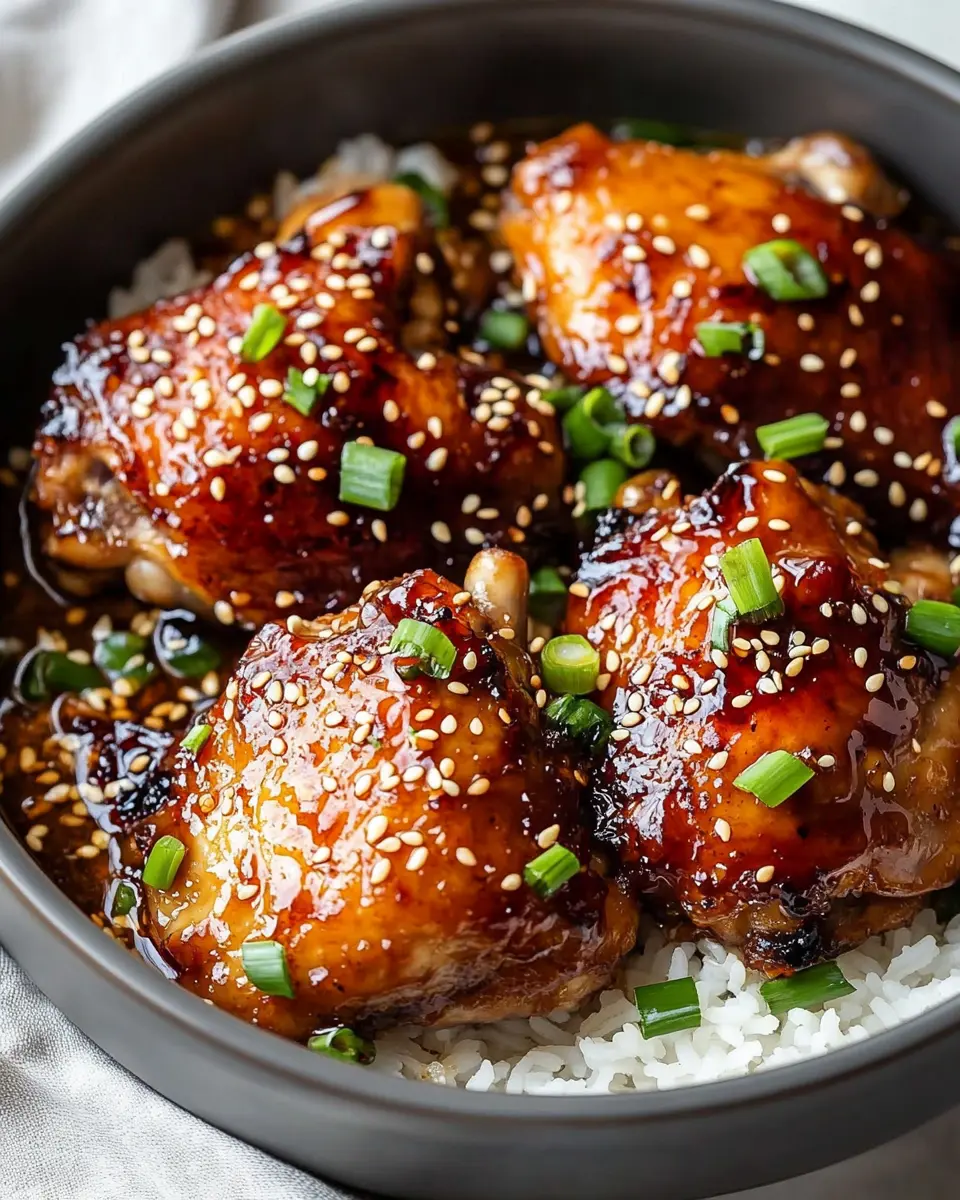 Presentation is key to making your meal feel special. Serve the chicken thighs over a bed of rice, drizzling the sticky sauce generously on top. For a pop of color, garnish with fresh chopped cilantro or green onions. A sprinkle of sesame seeds can also add a nice crunch and visual appeal, making your dish look as good as it tastes.