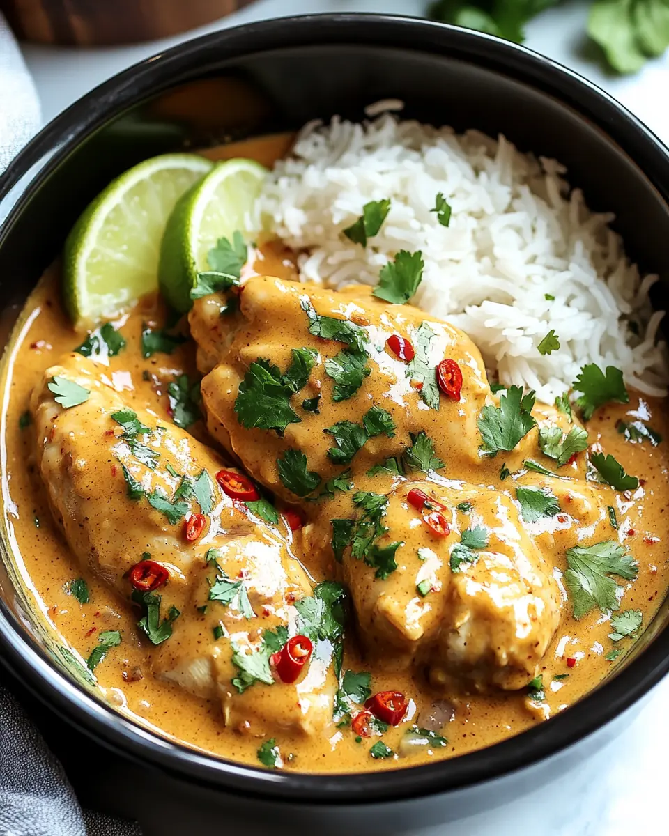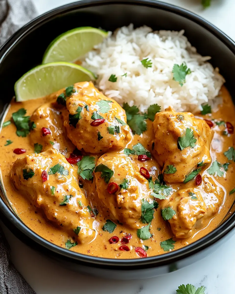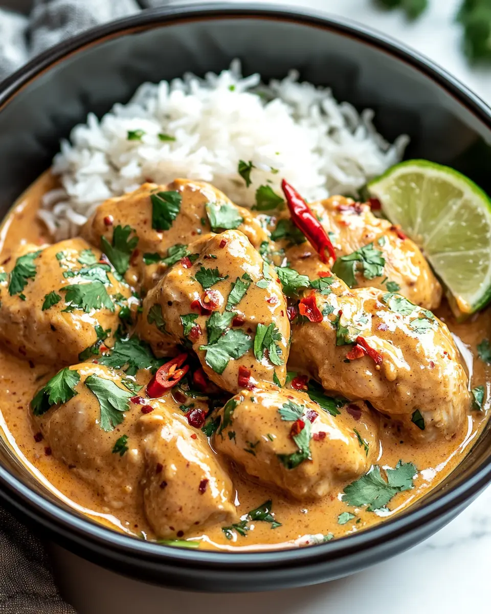 The combination of peanut butter, coconut milk, and Thai spices creates a flavor explosion that is both comforting and exotic. Each bite is packed with rich, nutty goodness, complemented by the freshness of cilantro and a hint of lime. It’s a delightful way to enjoy Thai cuisine right at home, making it a favorite for those who love to experiment with flavors.