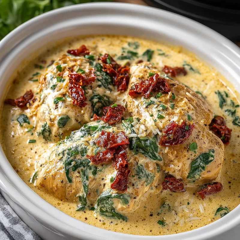 - Sauce Shower: Carefully pour this delicious Tuscan cream sauce evenly over the chicken in the crockpot. Make sure it covers everything beautifully.
