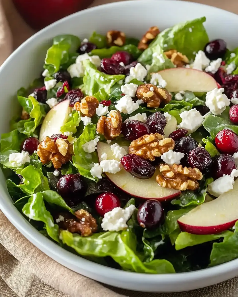 A refreshing salad featuring crunchy walnuts and sweet cranberries, perfect for any occasion.