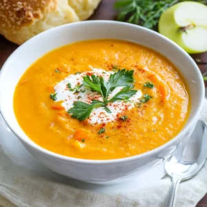 Remember those chilly autumn afternoons, the smell of spices wafting from the kitchen, and the comforting warmth of a bowl of soup? Well, get ready to recreate that magic! Today, we’re diving into a recipe that’s pure comfort and bursting with flavor: Curried Coconut Apple Carrot Soup. It’s the kind of meal that feels both nourishing and delightfully decadent, and the best part? It’s surprisingly simple to whip up, making it perfect for a weeknight treat or even a special gathering.