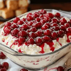 - Q: Can I use homemade cherry pie filling? A: Yes! Homemade cherry pie filling adds a homemade touch. Make sure the filling is completely cooled before layering it into the dessert.