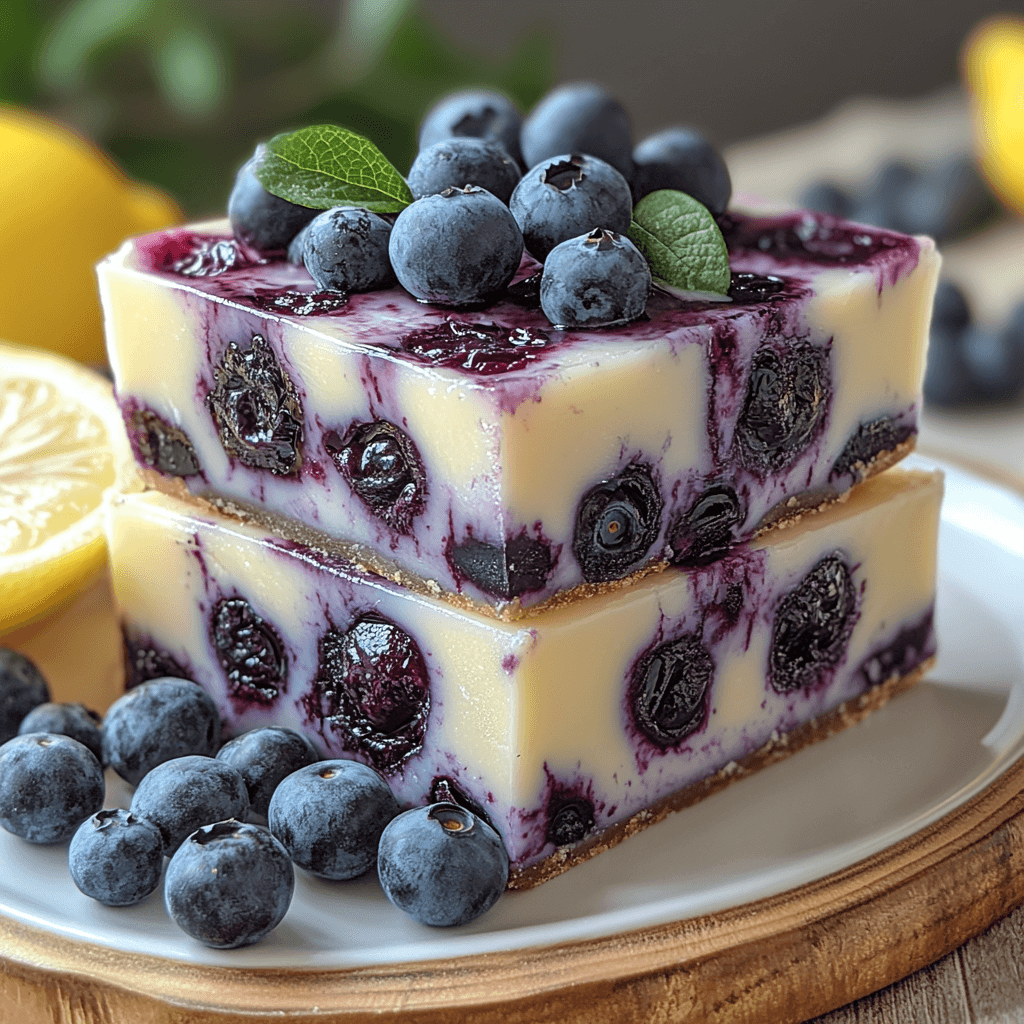 - Prepare the blueberry topping: In a saucepan, combine frozen blueberries, sugar, lemon juice, and cornstarch. Cook over medium heat, stirring constantly, until the mixture thickens.