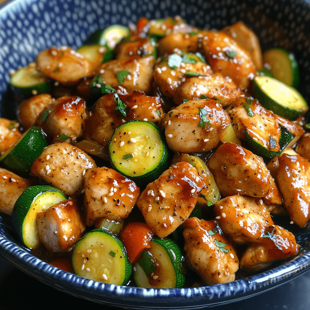 This delightful chicken zucchini stir-fry is a true weeknight winner! It’s quick, easy, healthy, and bursting with flavor. The combination of tender chicken, crisp-tender zucchini, and a savory-sweet sauce is simply irresistible. It’s the perfect recipe for busy weeknights when you need a delicious and satisfying meal on the table quickly. So why not give it a try? Let me know in the comments how it turned out, and don’t forget to rate the recipe! I can’t wait to hear from you!