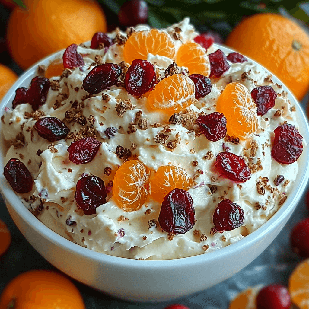 5. Fold in the Fruit: Gently fold in the chopped cranberries and the drained mandarin oranges. Use a spatula to gently mix, ensuring the fruit is evenly distributed throughout the cream cheese mixture. Be careful not to overmix; you want to maintain the integrity of the fruit pieces.