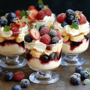Use high-quality berries for the best flavor. Look for berries that are firm, plump, and brightly colored. Avoid berries that are bruised or moldy. Make sure your whipping cream is very cold – this is crucial for achieving stiff peaks. If your cream is too warm, it won’t whip properly. Don’t overwhip the cream, as this can make it grainy. Stop whipping as soon as stiff peaks form. If you want a more intense berry flavor, lightly macerate the berries with a little sugar and lemon juice before assembling the trifle.