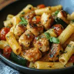 Hey there, food lovers! Are you craving a vibrant, flavorful meal that’s ready in a flash? Then look no further! This Chicken Sausages with Zucchini, Tomatoes, and Pasta recipe is your new weeknight go-to. Forget complicated techniques and endless ingredient lists; this dish is all about simple, fresh ingredients coming together to create something truly delicious. Imagine the taste: juicy chicken sausages bursting with flavor, tender zucchini ribbons, sweet sun-ripened tomatoes, all tossed in a light, herby sauce coating perfectly cooked pasta. The texture is a dream – a delightful mix of tender, juicy, and slightly al dente.