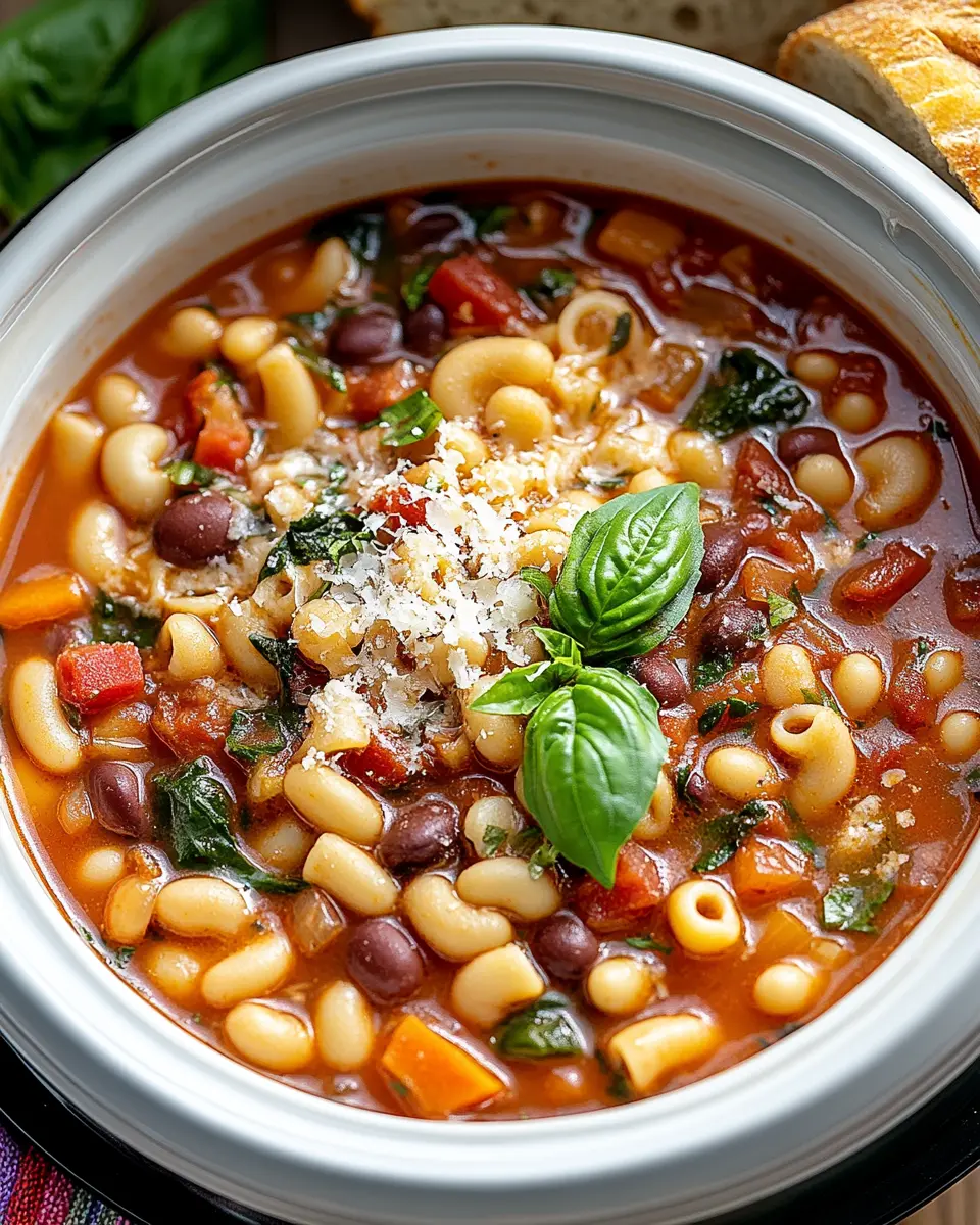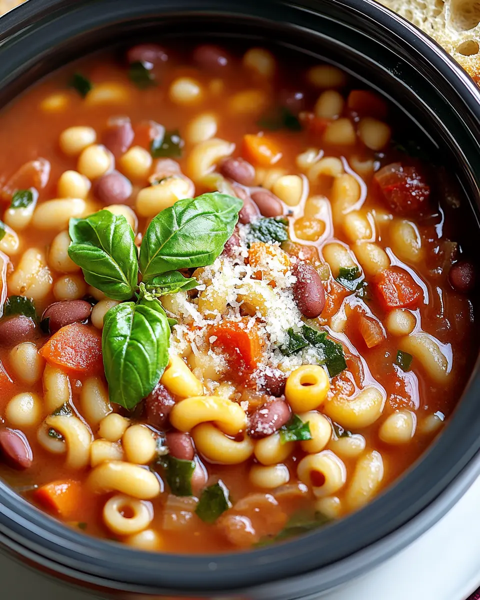 A hearty Italian pasta and bean soup that you can make in a slow cooker.